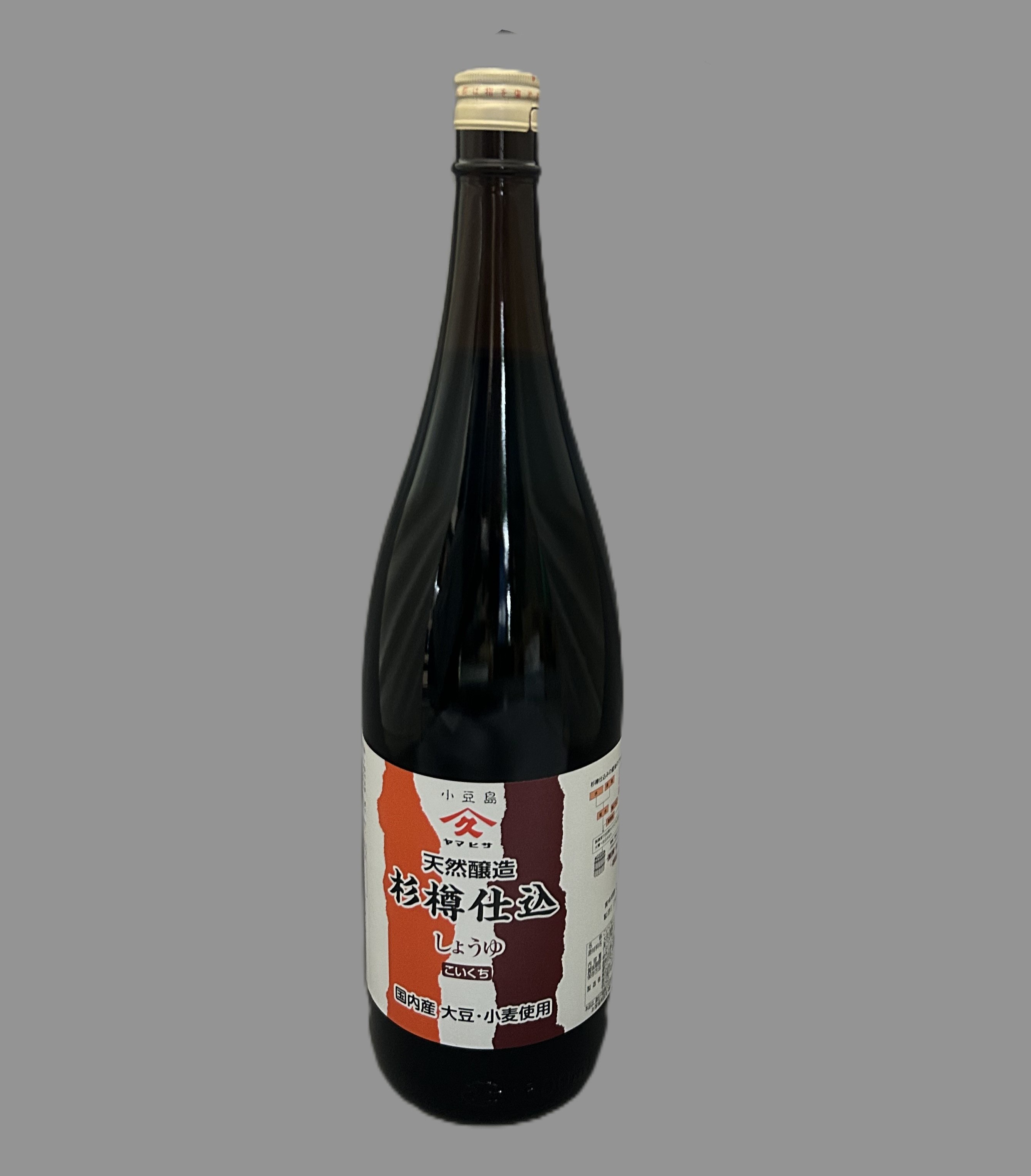 国内産丸大豆・丸小麦を主原料に杉樽で仕込んだ天然醸造醤油です。